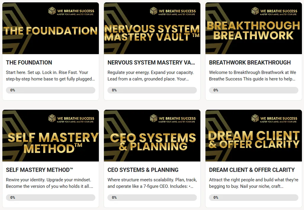 We Breathe Success is the only all-in-one mentorship that integrates mindset reprogramming, nervous system regulation, strategy, and identity expansion — so you stop spinning your wheels, break free from survival patterns, and scale fast without burning out.
