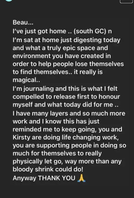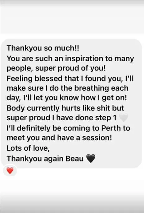 Breathwork really helped. It gave me perspective on my relationship with Dad and reminded me how much I have to be grateful for. I know some things will always be stored in my body, but I had a positive shift that lifted another layer of pain. Feeling good thank you so much.